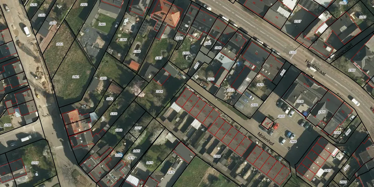 Het perceel waarop Molenhof 20 staat heeft een oppervlakte van 2000 m². Dit is een zeer groot perceel. De perceeloppervlakte wordt geregistreerd door het Kadaster. Gedetailleerde informatie over de maten van dit perceel kunt u vinden in het rapport Kadastrale kaart met maatvoering van Molenhof 20.