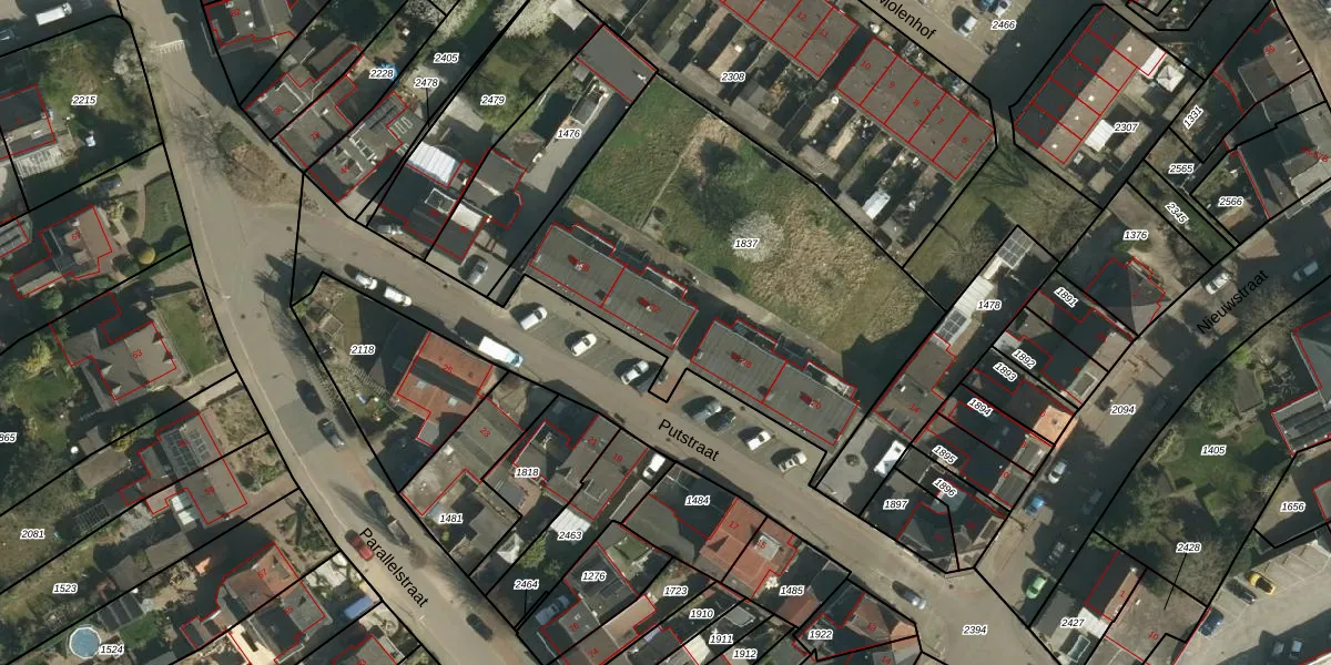 Het perceel waarop Putstraat 28 staat heeft een oppervlakte van 1910 m². Dit is een zeer groot perceel. De perceeloppervlakte wordt geregistreerd door het Kadaster. Gedetailleerde informatie over de maten van dit perceel kunt u vinden in het rapport Kadastrale kaart met maatvoering van Putstraat 28.