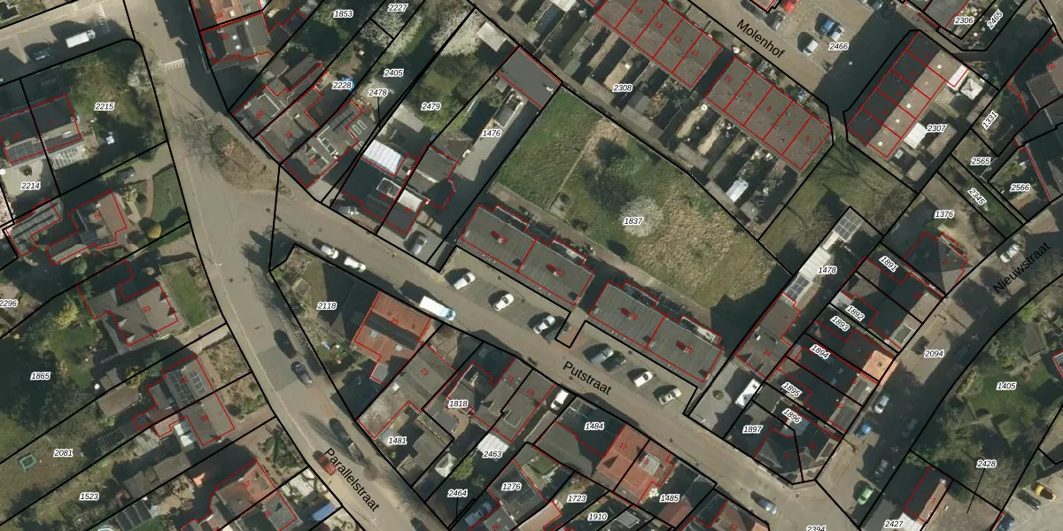 Het perceel waarop Putstraat 32 staat heeft een oppervlakte van 1910 m². Dit is een zeer groot perceel. De perceeloppervlakte wordt geregistreerd door het Kadaster. Gedetailleerde informatie over de maten van dit perceel kunt u vinden in het rapport Kadastrale kaart met maatvoering van Putstraat 32.
