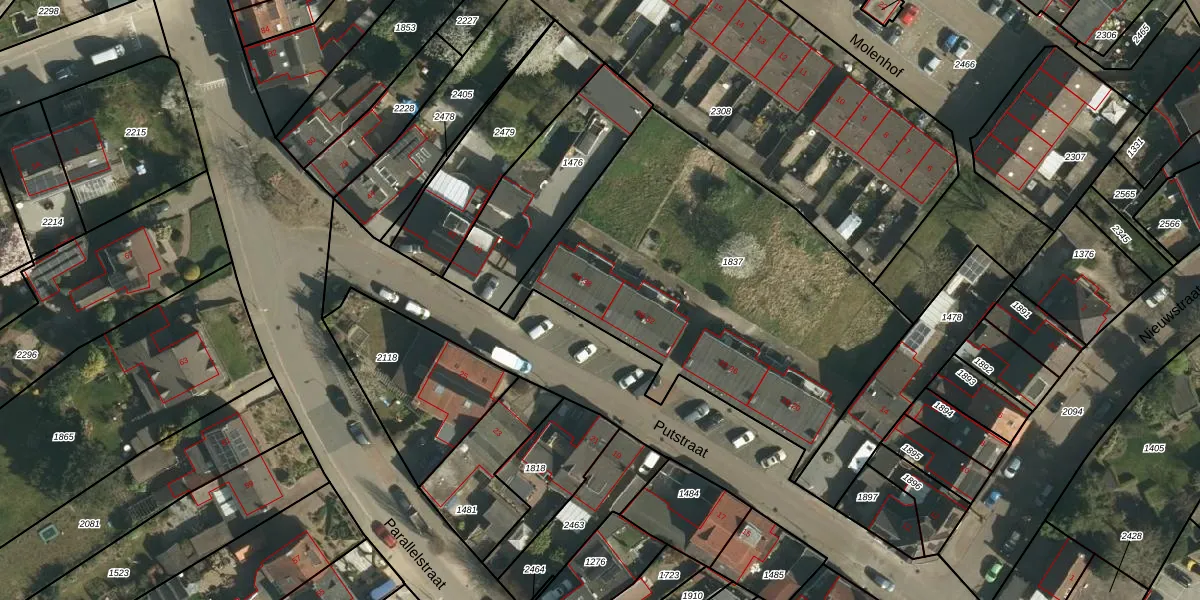 Het perceel waarop Putstraat 34 staat heeft een oppervlakte van 1910 m². Dit is een zeer groot perceel. De perceeloppervlakte wordt geregistreerd door het Kadaster. Gedetailleerde informatie over de maten van dit perceel kunt u vinden in het rapport Kadastrale kaart met maatvoering van Putstraat 34.
