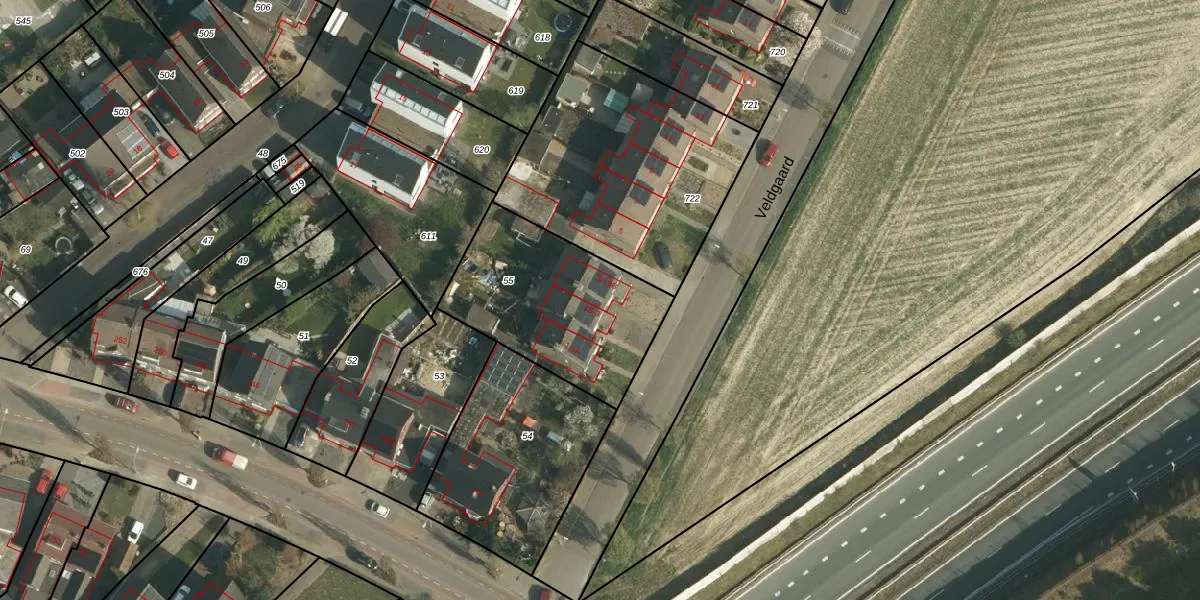 Het perceel waarop Veldgaard 3-A staat heeft een oppervlakte van 703 m². Dit is een groot perceel. De perceeloppervlakte wordt geregistreerd door het Kadaster. Gedetailleerde informatie over de maten van dit perceel kunt u vinden in het rapport Kadastrale kaart met maatvoering van Veldgaard 3-A.