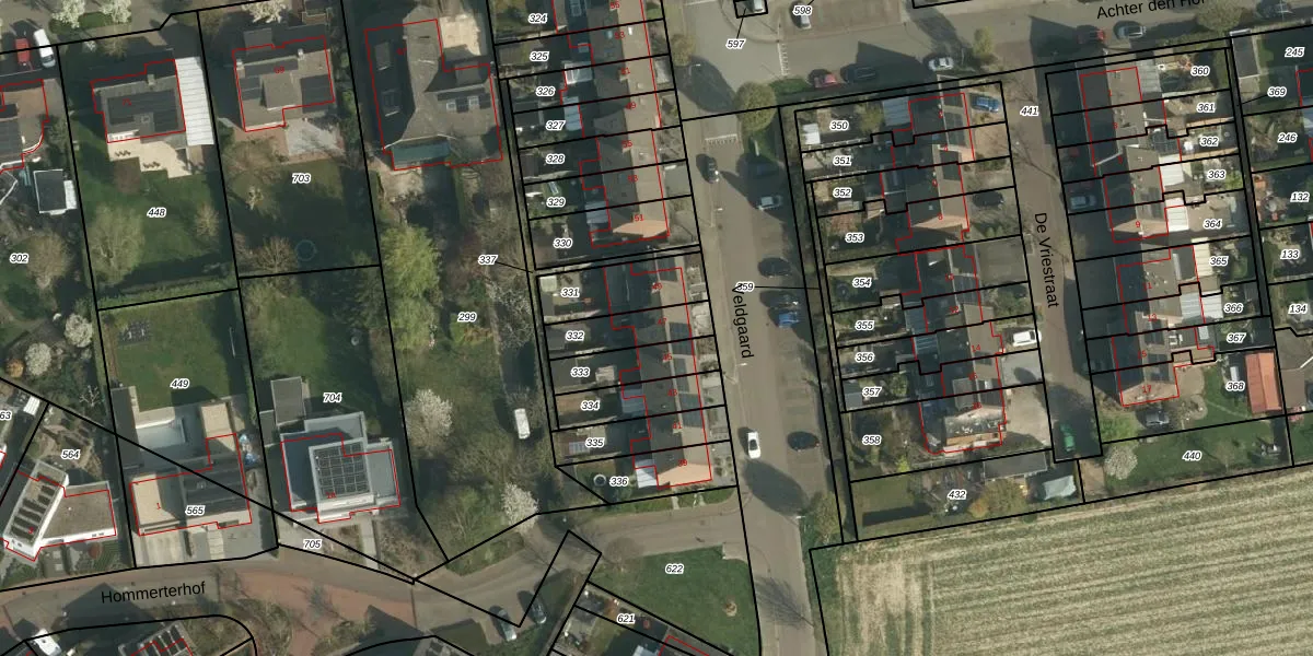 Gebruik de zoekbalk of klik op een perceel voor informatie over de adressen binnen dit perceel.