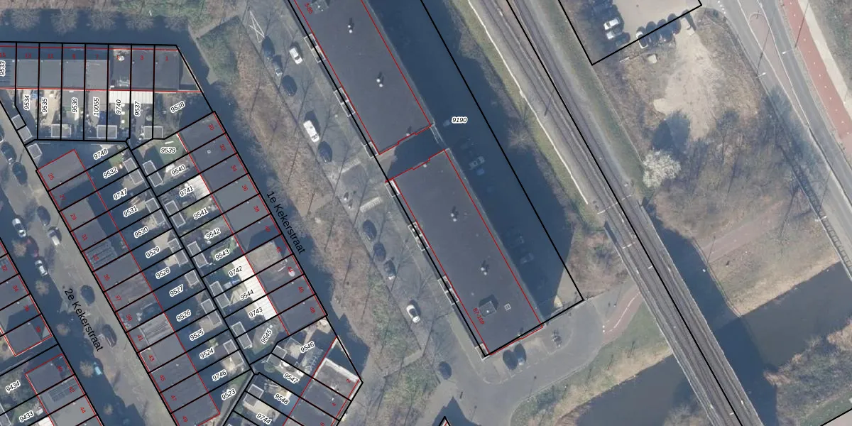Het perceel waarop 1e Kekerstraat 105 staat heeft een oppervlakte van 2761 m². Dit is een zeer groot perceel. De perceeloppervlakte wordt geregistreerd door het Kadaster. Gedetailleerde informatie over de maten van dit perceel kunt u vinden in het rapport Kadastrale kaart met maatvoering van 1e Kekerstraat 105.