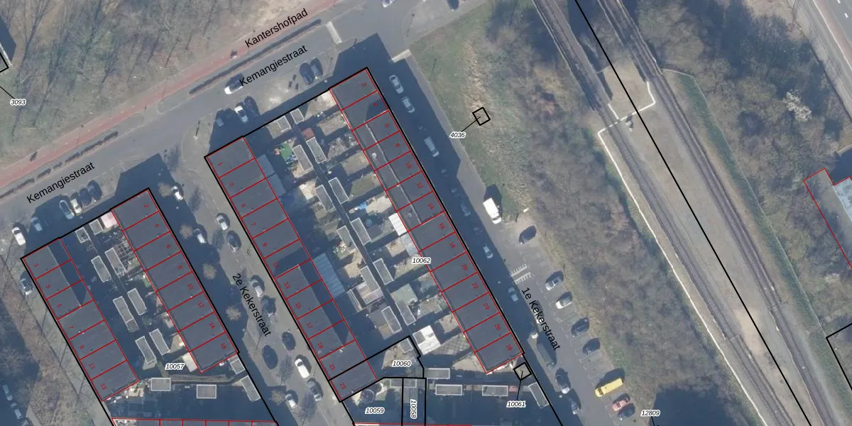 Het perceel waarop 1e Kekerstraat 14 staat heeft een oppervlakte van 3691 m². Dit is een zeer groot perceel. De perceeloppervlakte wordt geregistreerd door het Kadaster. Gedetailleerde informatie over de maten van dit perceel kunt u vinden in het rapport Kadastrale kaart met maatvoering van 1e Kekerstraat 14.