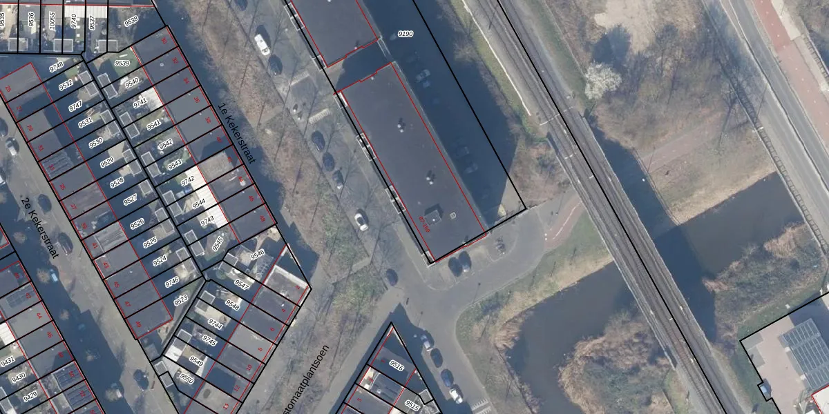 Het perceel waarop 1e Kekerstraat 147 staat heeft een oppervlakte van 2761 m². Dit is een zeer groot perceel. De perceeloppervlakte wordt geregistreerd door het Kadaster. Gedetailleerde informatie over de maten van dit perceel kunt u vinden in het rapport Kadastrale kaart met maatvoering van 1e Kekerstraat 147.