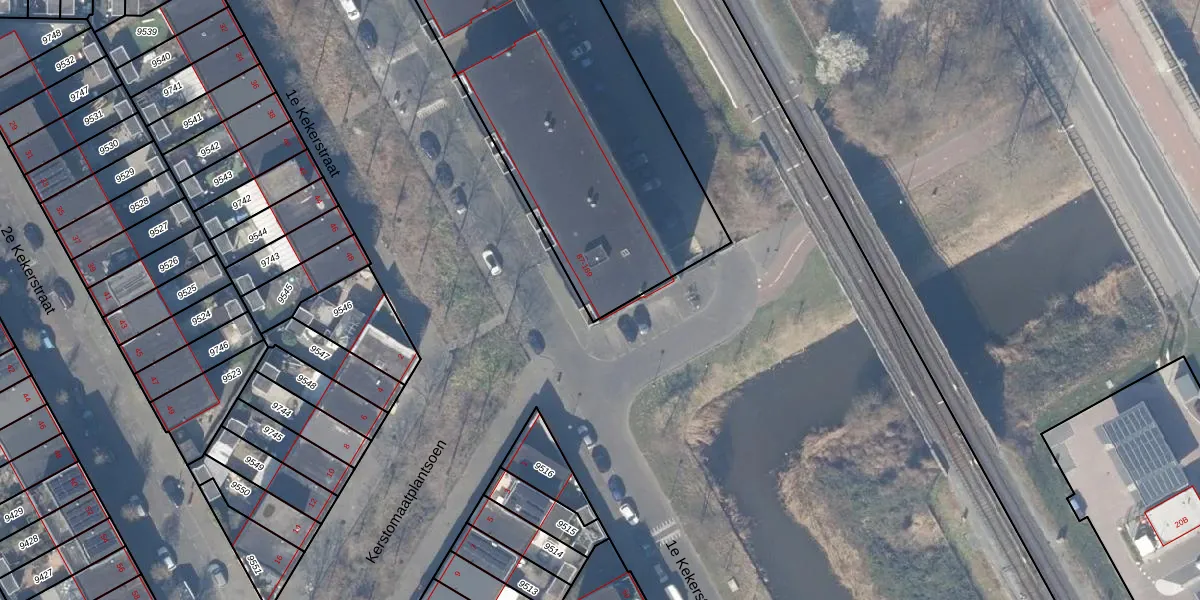 Het perceel waarop 1e Kekerstraat 167 staat heeft een oppervlakte van 2761 m². Dit is een zeer groot perceel. De perceeloppervlakte wordt geregistreerd door het Kadaster. Gedetailleerde informatie over de maten van dit perceel kunt u vinden in het rapport Kadastrale kaart met maatvoering van 1e Kekerstraat 167.