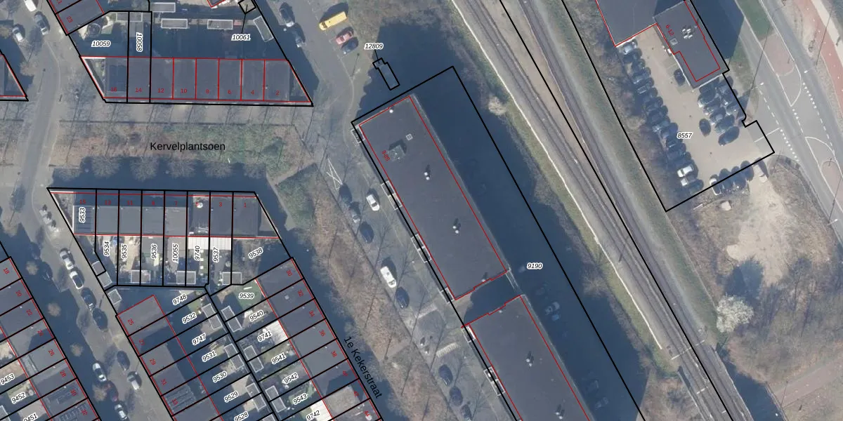 Het perceel waarop 1e Kekerstraat 47 staat heeft een oppervlakte van 2761 m². Dit is een zeer groot perceel. De perceeloppervlakte wordt geregistreerd door het Kadaster. Gedetailleerde informatie over de maten van dit perceel kunt u vinden in het rapport Kadastrale kaart met maatvoering van 1e Kekerstraat 47.