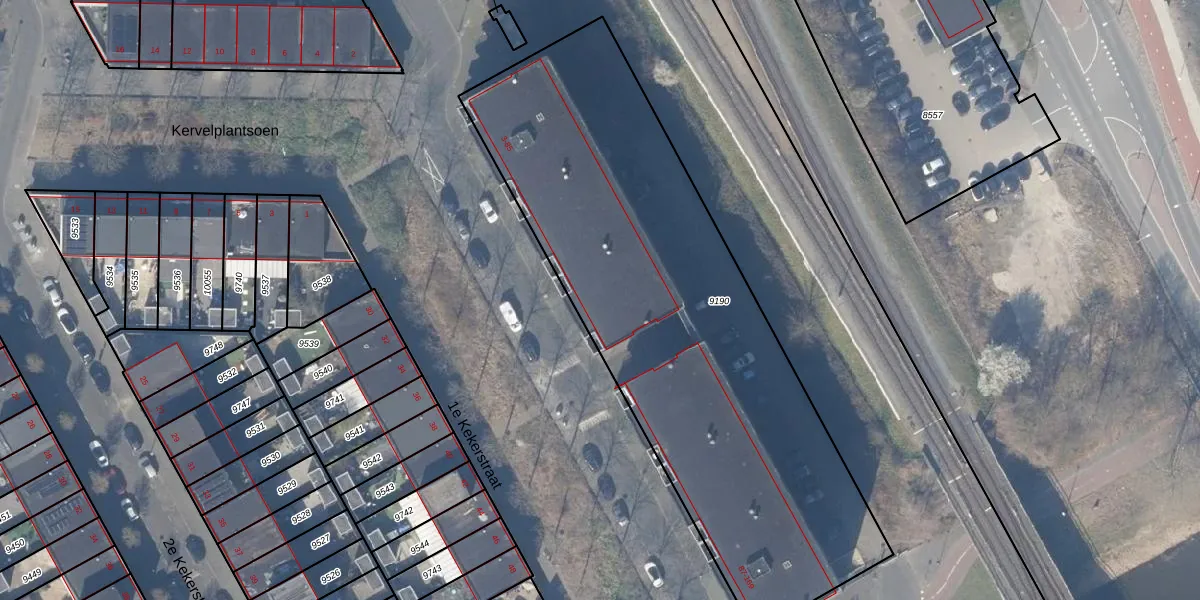 Het perceel waarop 1e Kekerstraat 75 staat heeft een oppervlakte van 2761 m². Dit is een zeer groot perceel. De perceeloppervlakte wordt geregistreerd door het Kadaster. Gedetailleerde informatie over de maten van dit perceel kunt u vinden in het rapport Kadastrale kaart met maatvoering van 1e Kekerstraat 75.