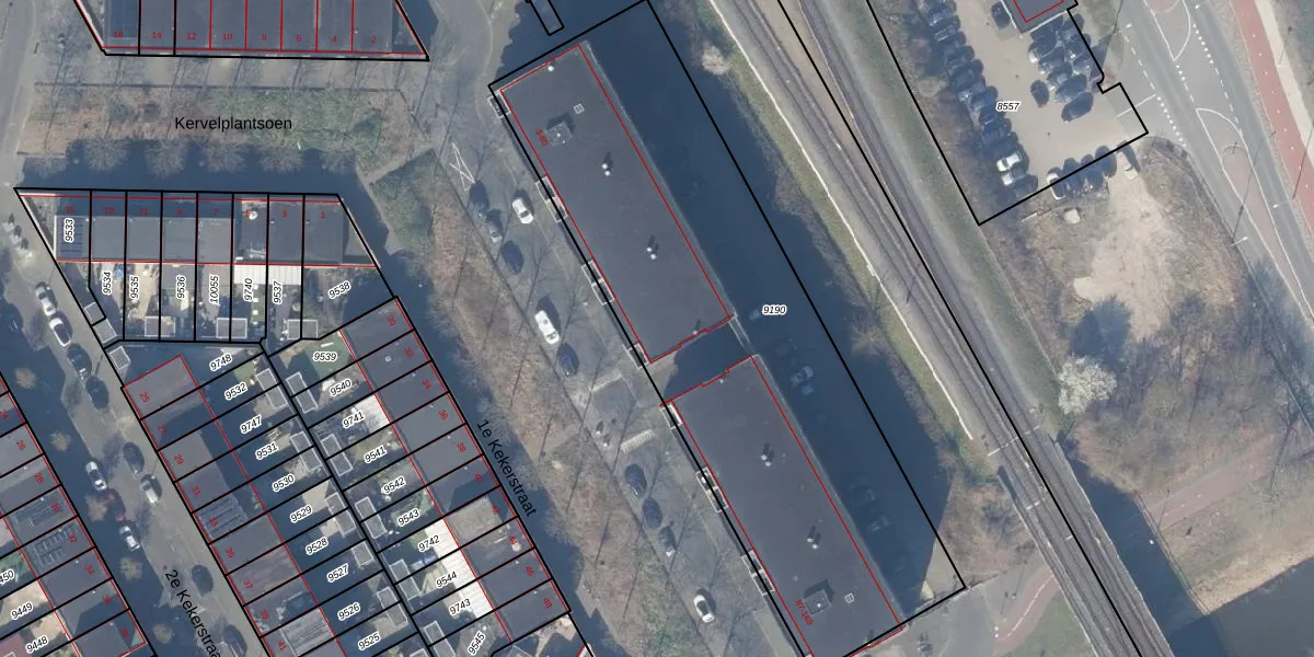 Het perceel waarop 1e Kekerstraat 81 staat heeft een oppervlakte van 2761 m². Dit is een zeer groot perceel. De perceeloppervlakte wordt geregistreerd door het Kadaster. Gedetailleerde informatie over de maten van dit perceel kunt u vinden in het rapport Kadastrale kaart met maatvoering van 1e Kekerstraat 81.