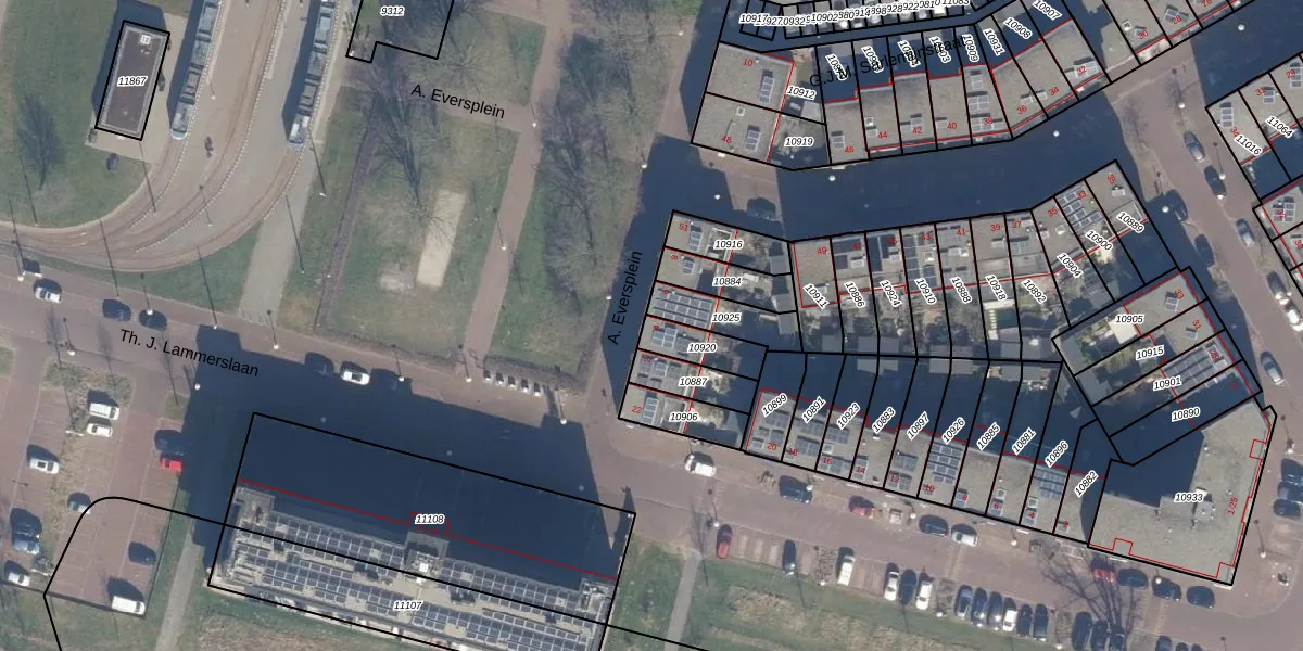 Het perceel waarop A. Eversplein 4 staat heeft een oppervlakte van 105 m². Dit is een middelgroot perceel. De perceeloppervlakte wordt geregistreerd door het Kadaster. Gedetailleerde informatie over de maten van dit perceel kunt u vinden in het rapport Kadastrale kaart met maatvoering van A. Eversplein 4.