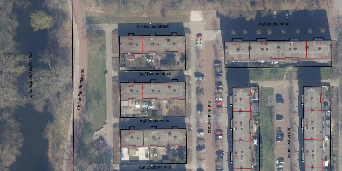 Aaf Bouberstraat 25 is gelegen op kadastraal perceel STN02D6034. Deze kadastrale aanduiding is uniek en wordt gebruikt door het Kadaster om eigendomsrechten en andere zakelijke rechten vast te leggen. Het perceel maakt onderdeel uit van de kadastrale gemeente Sloten Noord-Holland.