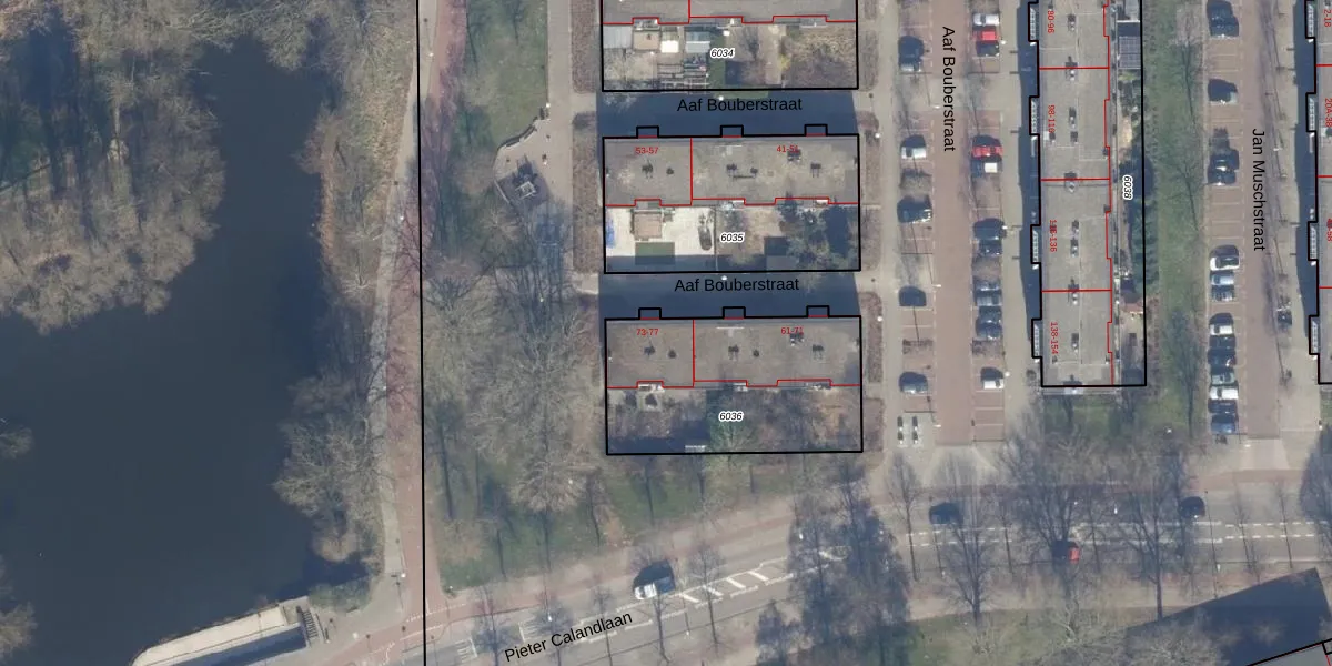 Aaf Bouberstraat 73 is gelegen op kadastraal perceel STN02D6036. Deze kadastrale aanduiding is uniek en wordt gebruikt door het Kadaster om eigendomsrechten en andere zakelijke rechten vast te leggen. Het perceel maakt onderdeel uit van de kadastrale gemeente Sloten Noord-Holland.