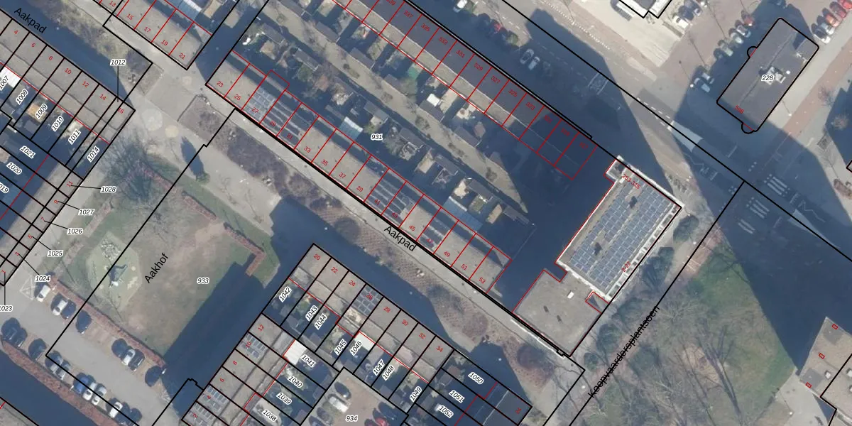 Aakpad 45 is gelegen op kadastraal perceel ASD32AM931. Deze kadastrale aanduiding is uniek en wordt gebruikt door het Kadaster om eigendomsrechten en andere zakelijke rechten vast te leggen. Het perceel maakt onderdeel uit van de kadastrale gemeente Amsterdam.