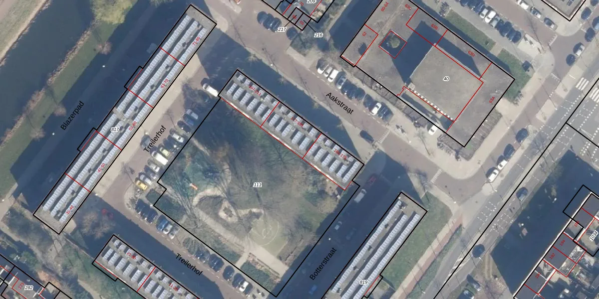 Het perceel waarop Aakstraat 191 staat heeft een oppervlakte van 2865 m². Dit is een zeer groot perceel. De perceeloppervlakte wordt geregistreerd door het Kadaster. Gedetailleerde informatie over de maten van dit perceel kunt u vinden in het rapport Kadastrale kaart met maatvoering van Aakstraat 191.