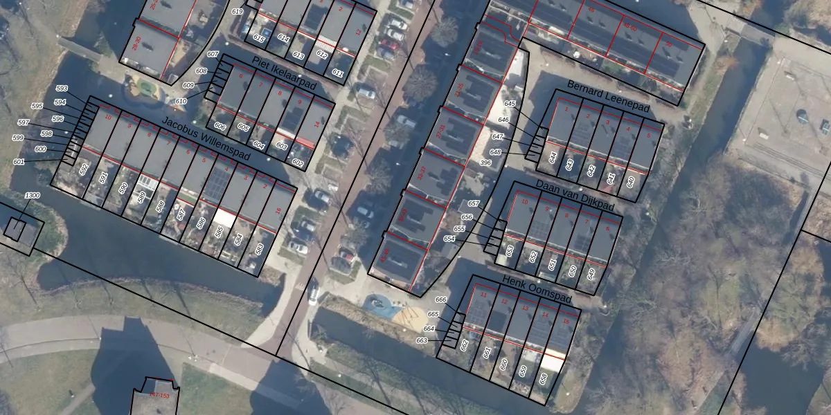 Het perceel waarop Abebe Bikilalaan 41 staat heeft een oppervlakte van 2003 m². Dit is een zeer groot perceel. De perceeloppervlakte wordt geregistreerd door het Kadaster. Gedetailleerde informatie over de maten van dit perceel kunt u vinden in het rapport Kadastrale kaart met maatvoering van Abebe Bikilalaan 41.