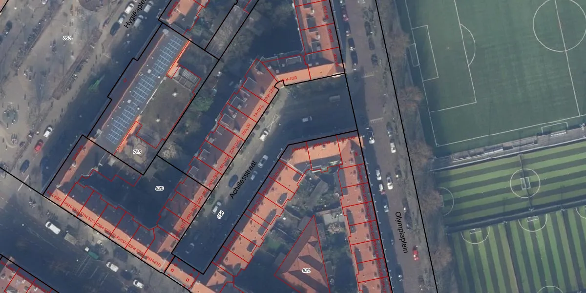 Het perceel waarop Achillesstraat 19-2 staat heeft een oppervlakte van 3907 m². Dit is een zeer groot perceel. De perceeloppervlakte wordt geregistreerd door het Kadaster. Gedetailleerde informatie over de maten van dit perceel kunt u vinden in het rapport Kadastrale kaart met maatvoering van Achillesstraat 19-2.