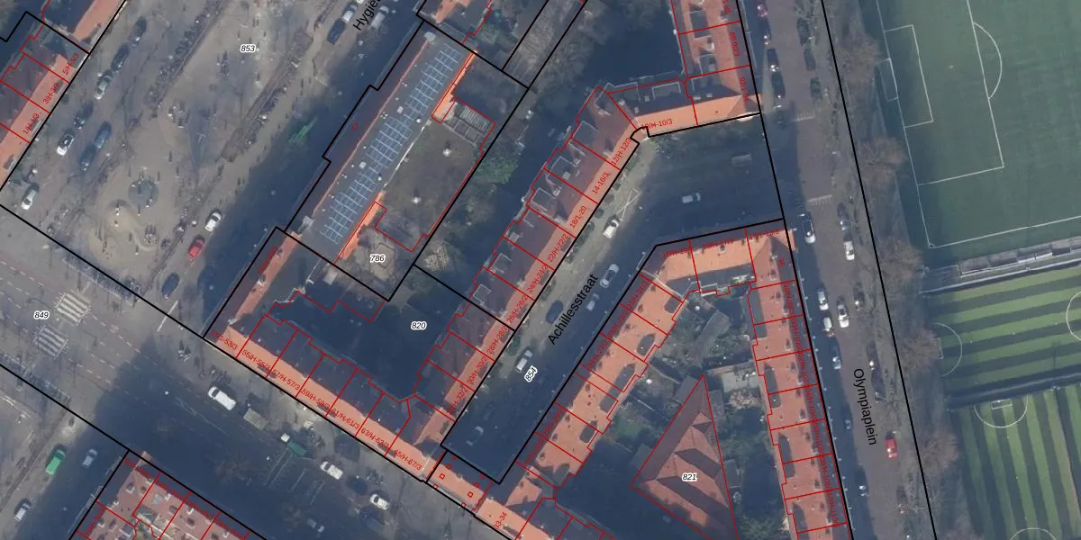Het perceel waarop Achillesstraat 24-H staat heeft een oppervlakte van 6807 m². Dit is een zeer groot perceel. De perceeloppervlakte wordt geregistreerd door het Kadaster. Gedetailleerde informatie over de maten van dit perceel kunt u vinden in het rapport Kadastrale kaart met maatvoering van Achillesstraat 24-H.
