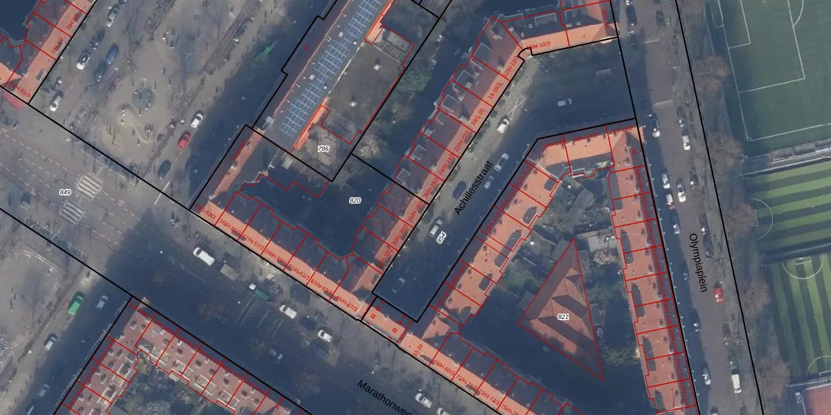 Het perceel waarop Achillesstraat 28-H staat heeft een oppervlakte van 1371 m². Dit is een zeer groot perceel. De perceeloppervlakte wordt geregistreerd door het Kadaster. Gedetailleerde informatie over de maten van dit perceel kunt u vinden in het rapport Kadastrale kaart met maatvoering van Achillesstraat 28-H.