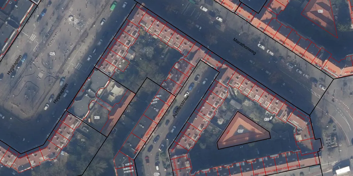 Het perceel waarop Achillesstraat 42-2 staat heeft een oppervlakte van 5551 m². Dit is een zeer groot perceel. De perceeloppervlakte wordt geregistreerd door het Kadaster. Gedetailleerde informatie over de maten van dit perceel kunt u vinden in het rapport Kadastrale kaart met maatvoering van Achillesstraat 42-2.