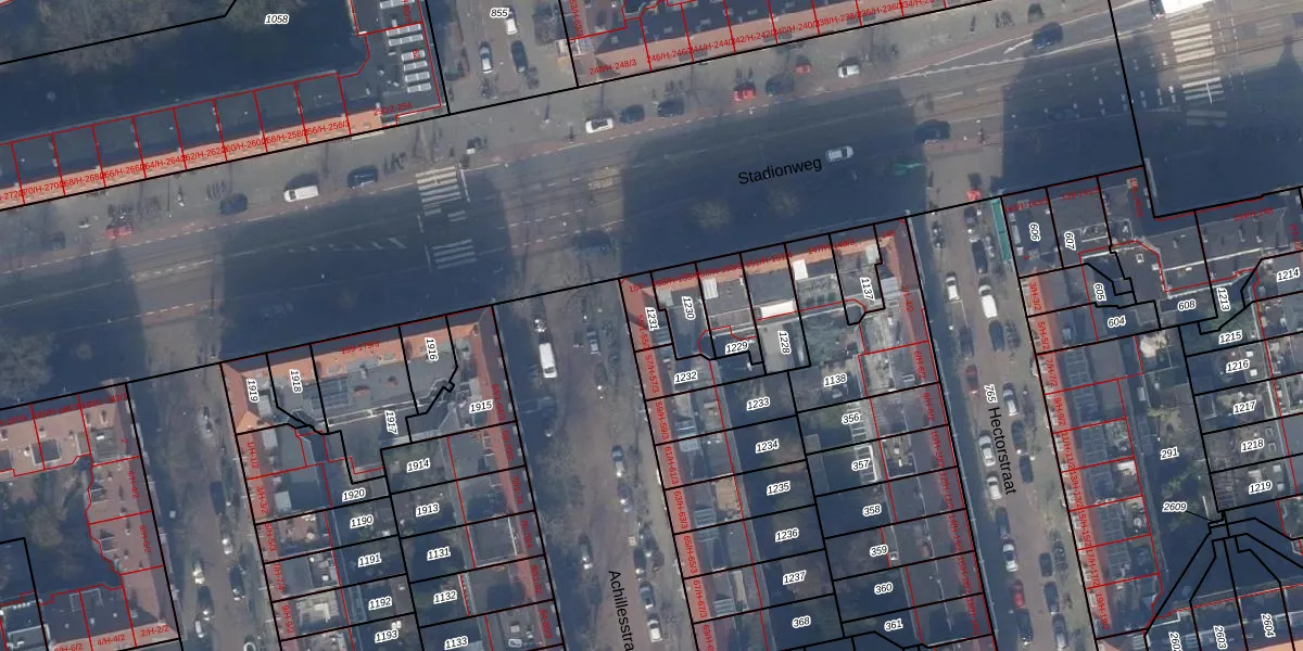 Het perceel waarop Achillesstraat 55-2 staat heeft een oppervlakte van 64 m². Dit is een klein perceel. De perceeloppervlakte wordt geregistreerd door het Kadaster. Gedetailleerde informatie over de maten van dit perceel kunt u vinden in het rapport Kadastrale kaart met maatvoering van Achillesstraat 55-2.