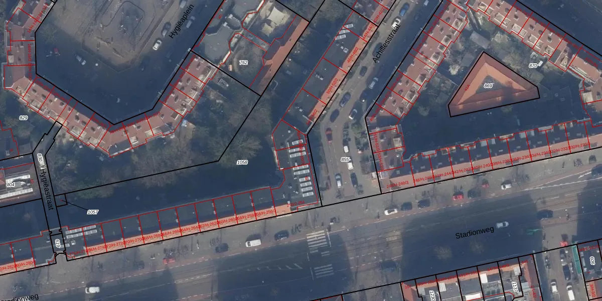 Het perceel waarop Achillesstraat 60-1 staat heeft een oppervlakte van 3021 m². Dit is een zeer groot perceel. De perceeloppervlakte wordt geregistreerd door het Kadaster. Gedetailleerde informatie over de maten van dit perceel kunt u vinden in het rapport Kadastrale kaart met maatvoering van Achillesstraat 60-1.