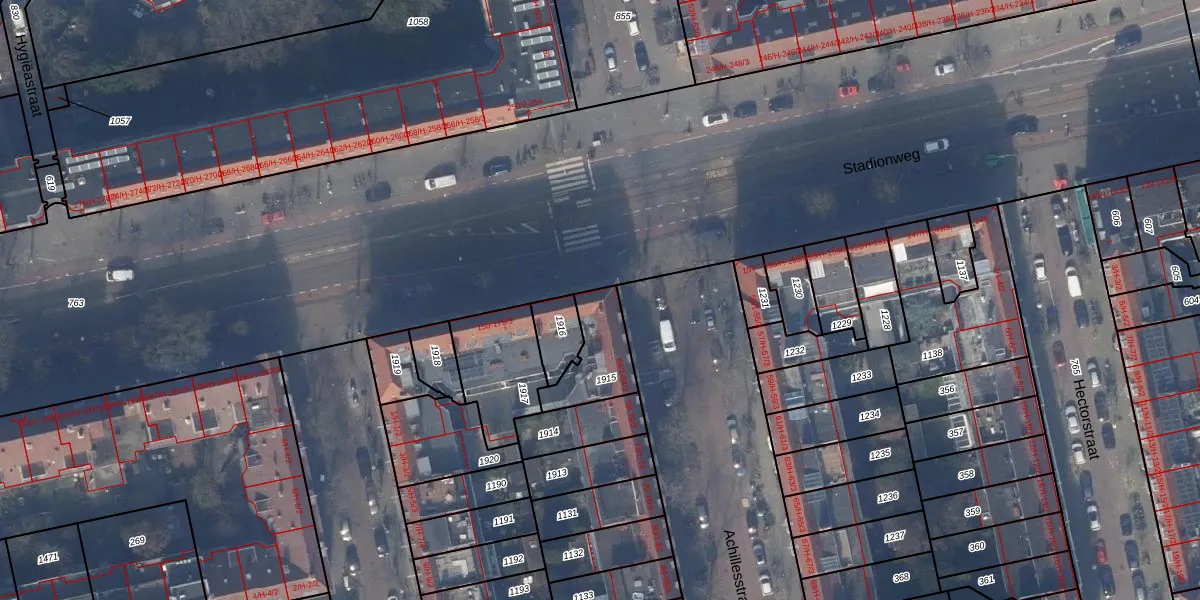 Het perceel waarop Achillesstraat 66 staat heeft een oppervlakte van 176 m². Dit is een middelgroot perceel. De perceeloppervlakte wordt geregistreerd door het Kadaster. Gedetailleerde informatie over de maten van dit perceel kunt u vinden in het rapport Kadastrale kaart met maatvoering van Achillesstraat 66.