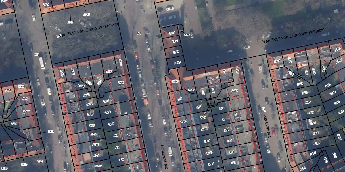 Het perceel waarop Achillesstraat 95-H staat heeft een oppervlakte van 95 m². Dit is een klein perceel. De perceeloppervlakte wordt geregistreerd door het Kadaster. Gedetailleerde informatie over de maten van dit perceel kunt u vinden in het rapport Kadastrale kaart met maatvoering van Achillesstraat 95-H.