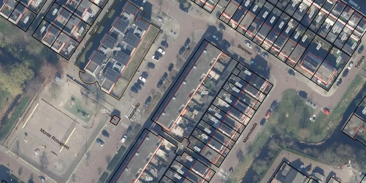 Het perceel waarop Adamello 31 staat heeft een oppervlakte van 1222 m². Dit is een zeer groot perceel. De perceeloppervlakte wordt geregistreerd door het Kadaster. Gedetailleerde informatie over de maten van dit perceel kunt u vinden in het rapport Kadastrale kaart met maatvoering van Adamello 31.