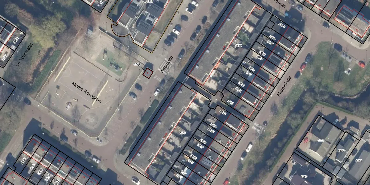 Het perceel waarop Adamello 41 staat heeft een oppervlakte van 1222 m². Dit is een zeer groot perceel. De perceeloppervlakte wordt geregistreerd door het Kadaster. Gedetailleerde informatie over de maten van dit perceel kunt u vinden in het rapport Kadastrale kaart met maatvoering van Adamello 41.
