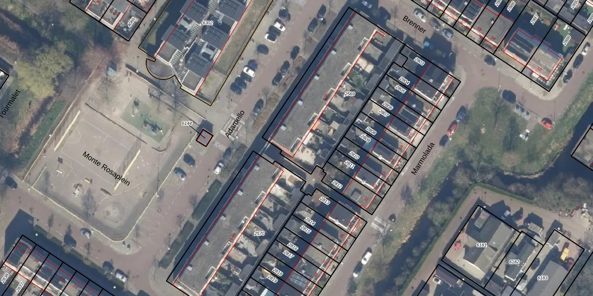 Het perceel waarop Adamello 9 staat heeft een oppervlakte van 1222 m². Dit is een zeer groot perceel. De perceeloppervlakte wordt geregistreerd door het Kadaster. Gedetailleerde informatie over de maten van dit perceel kunt u vinden in het rapport Kadastrale kaart met maatvoering van Adamello 9.