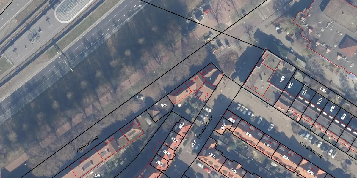 Het perceel waarop Adelaarsweg 103-H staat heeft een oppervlakte van 3430 m². Dit is een zeer groot perceel. De perceeloppervlakte wordt geregistreerd door het Kadaster. Gedetailleerde informatie over de maten van dit perceel kunt u vinden in het rapport Kadastrale kaart met maatvoering van Adelaarsweg 103-H.