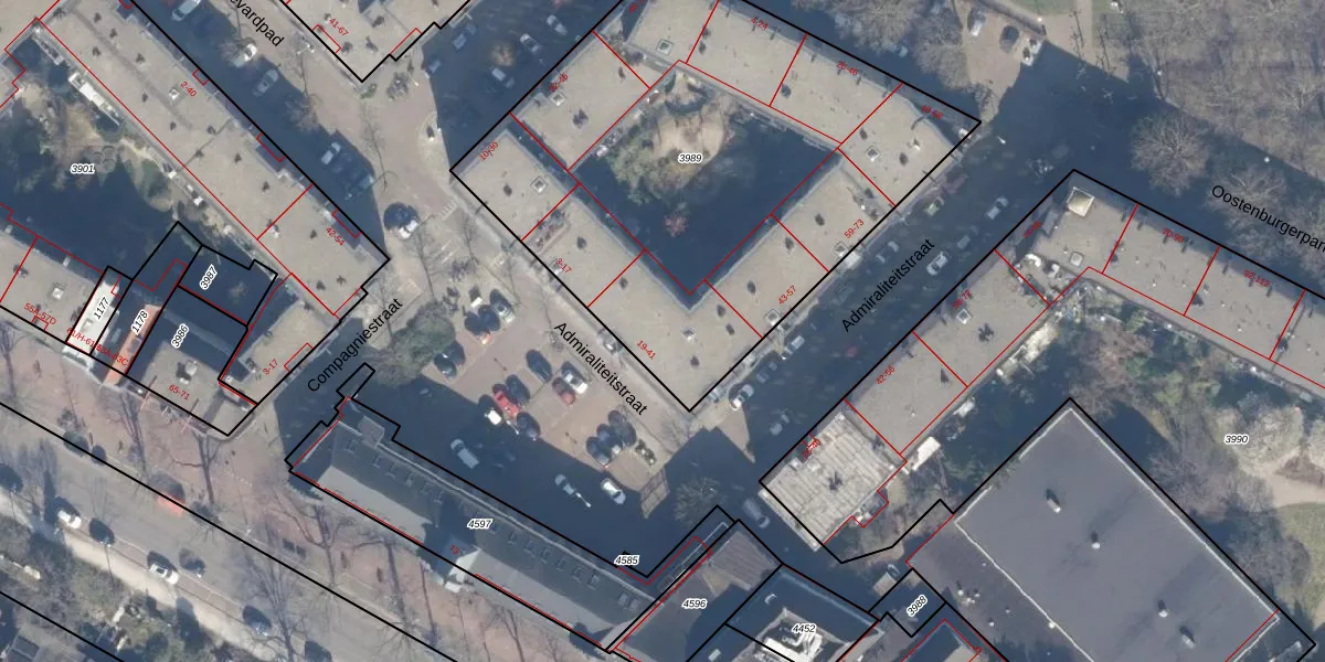 Het perceel waarop Admiraliteitstraat 23 staat heeft een oppervlakte van 2753 m². Dit is een zeer groot perceel. De perceeloppervlakte wordt geregistreerd door het Kadaster. Gedetailleerde informatie over de maten van dit perceel kunt u vinden in het rapport Kadastrale kaart met maatvoering van Admiraliteitstraat 23.