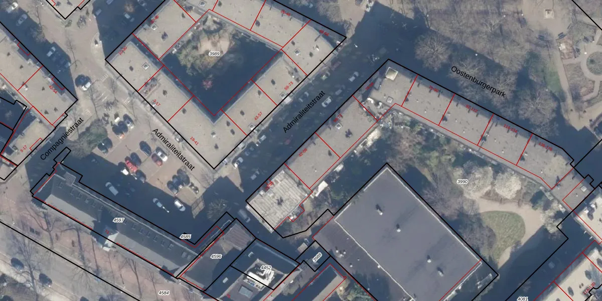 Het perceel waarop Admiraliteitstraat 46 staat heeft een oppervlakte van 4130 m². Dit is een zeer groot perceel. De perceeloppervlakte wordt geregistreerd door het Kadaster. Gedetailleerde informatie over de maten van dit perceel kunt u vinden in het rapport Kadastrale kaart met maatvoering van Admiraliteitstraat 46.