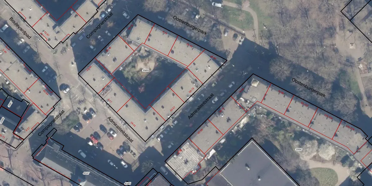 Het perceel waarop Admiraliteitstraat 59 staat heeft een oppervlakte van 2753 m². Dit is een zeer groot perceel. De perceeloppervlakte wordt geregistreerd door het Kadaster. Gedetailleerde informatie over de maten van dit perceel kunt u vinden in het rapport Kadastrale kaart met maatvoering van Admiraliteitstraat 59.