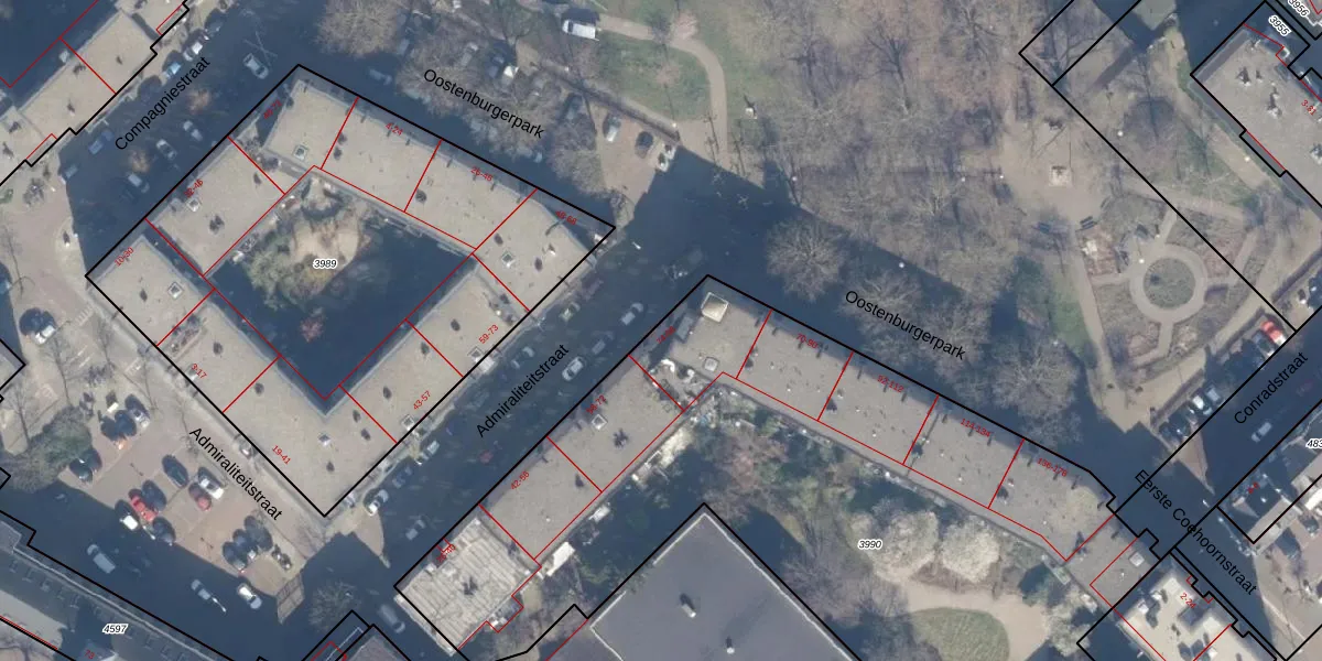 Het perceel waarop Admiraliteitstraat 82 staat heeft een oppervlakte van 4130 m². Dit is een zeer groot perceel. De perceeloppervlakte wordt geregistreerd door het Kadaster. Gedetailleerde informatie over de maten van dit perceel kunt u vinden in het rapport Kadastrale kaart met maatvoering van Admiraliteitstraat 82.