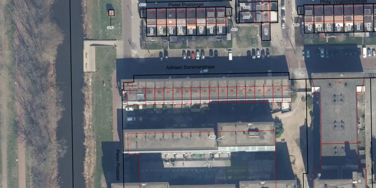 Het perceel waarop Adriaan Dorsmanstraat 59 staat heeft een oppervlakte van 7517 m². Dit is een zeer groot perceel. De perceeloppervlakte wordt geregistreerd door het Kadaster. Gedetailleerde informatie over de maten van dit perceel kunt u vinden in het rapport Kadastrale kaart met maatvoering van Adriaan Dorsmanstraat 59.
