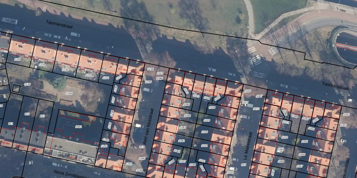 Het perceel waarop Aert van Nesstraat 7 staat heeft een oppervlakte van 69 m². Dit is een klein perceel. De perceeloppervlakte wordt geregistreerd door het Kadaster. Gedetailleerde informatie over de maten van dit perceel kunt u vinden in het rapport Kadastrale kaart met maatvoering van Aert van Nesstraat 7.