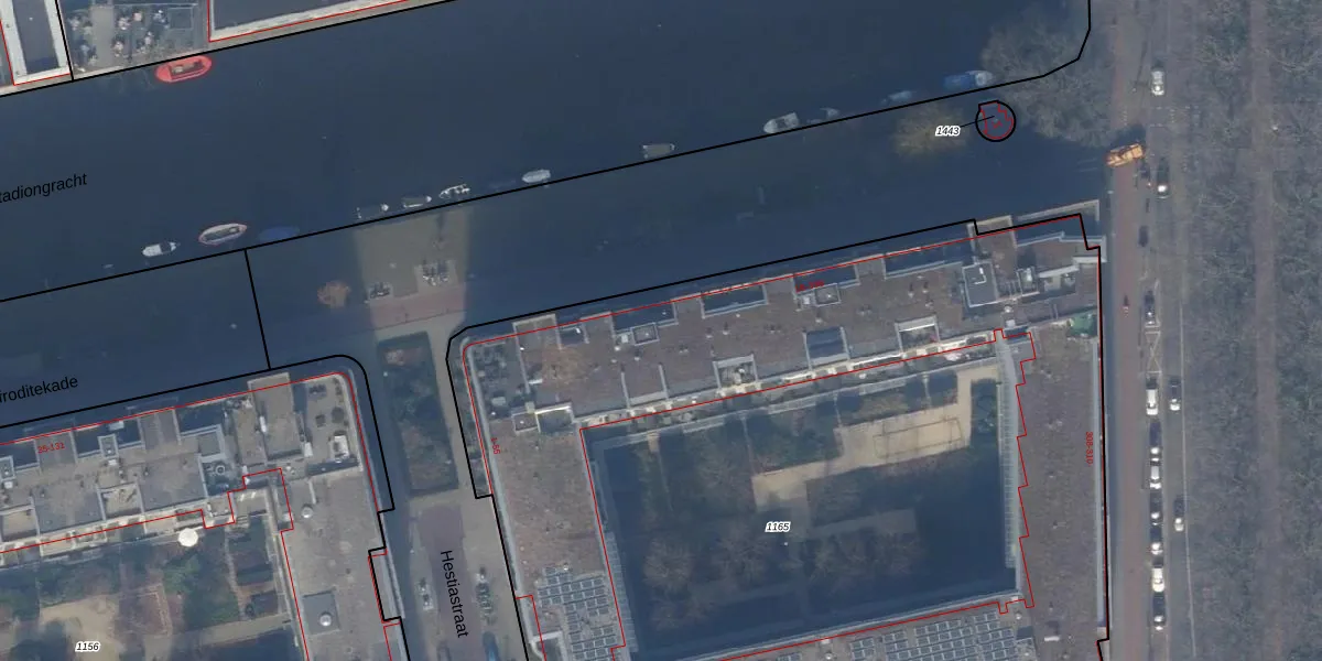 Het adres ligt op het perceel ASD24-AC-1165, dat zich in de kadastrale gemeente Amsterdam bevindt. De oppervlakte van het perceel is 6883 m². Dat is groter dan gemiddeld in Amsterdam, waar de gemiddelde perceeloppervlakte op 1361,91 m² ligt. De grootste perceeloppervlakte in de kadastrale gemeente is 5,8 ha. De kleinste oppervlakte bedraagt 1 m². Op het perceel liggen in totaal 212 adressen. In de Basisregistratie Kadaster (BRK) werden de grenzen van het perceel geregistreerd op 16-06-2011.
