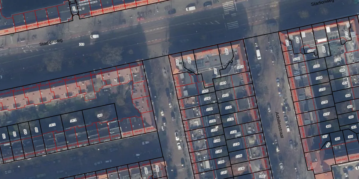 Het adres is gelegen op perceel 1920 in de sectie AB en de kadastrale gemeente Amsterdam. De kadastrale aanduiding is aldus ASD23-AB-1920. Het perceel is kleiner dan gemiddeld in Amsterdam. Het perceel is 220 m² groot, terwijl het gemiddelde ligt op 1139,27 m². De grootste perceeloppervlakte in de kadastrale gemeente is 28,7 ha. De kleinste oppervlakte bedraagt 0 m². Op het perceel liggen in totaal 6 adressen. De huidige grenzen van het perceel zijn digitaal in de Basisregistratie Kadaster (BRK) geregistreerd op 15-09-2006.