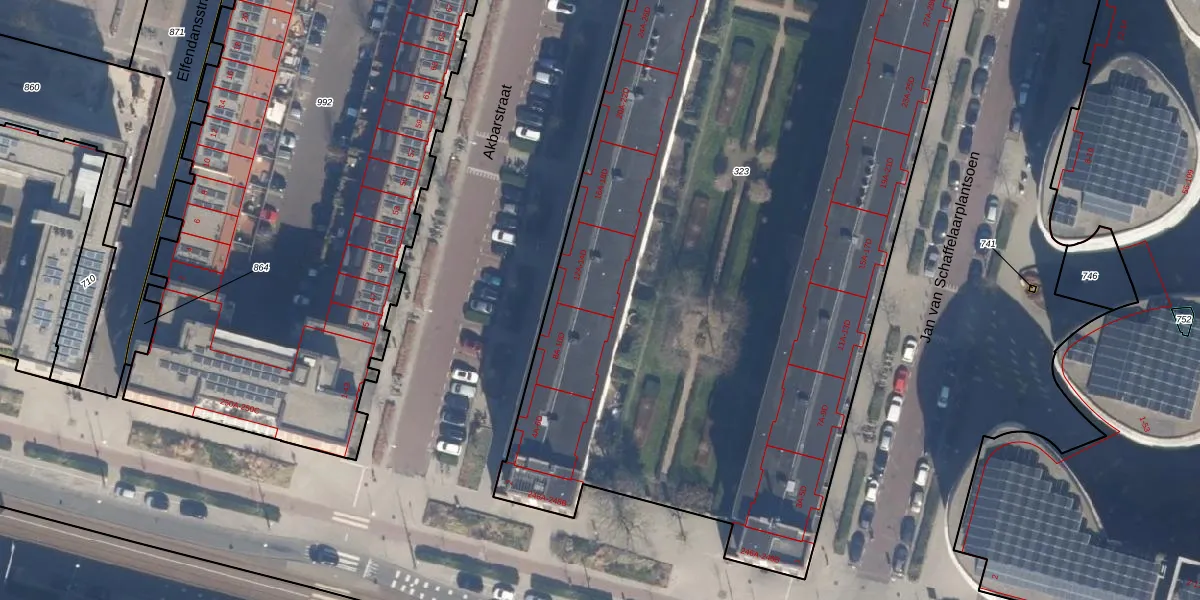 Het perceel waarop Akbarstraat 12-D staat heeft een oppervlakte van 6290 m². Dit is een zeer groot perceel. De perceeloppervlakte wordt geregistreerd door het Kadaster. Gedetailleerde informatie over de maten van dit perceel kunt u vinden in het rapport Kadastrale kaart met maatvoering van Akbarstraat 12-D.