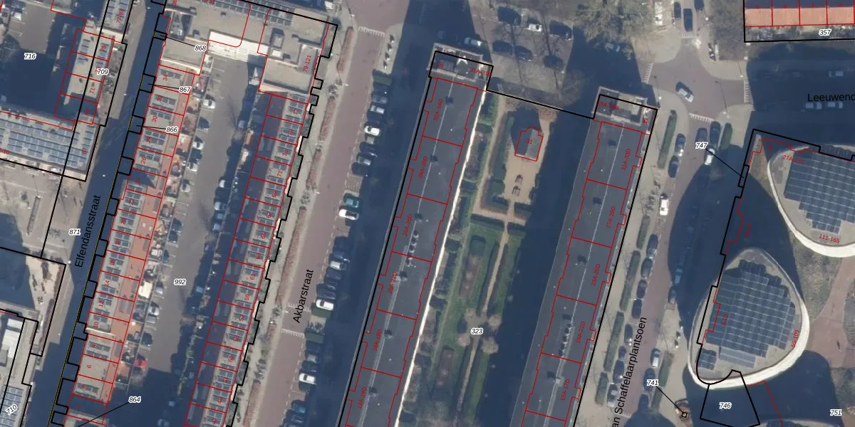 Het perceel waarop Akbarstraat 26-C staat heeft een oppervlakte van 6290 m². Dit is een zeer groot perceel. De perceeloppervlakte wordt geregistreerd door het Kadaster. Gedetailleerde informatie over de maten van dit perceel kunt u vinden in het rapport Kadastrale kaart met maatvoering van Akbarstraat 26-C.