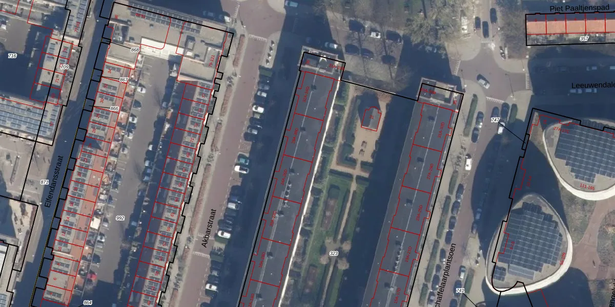 Het perceel waarop Akbarstraat 28-D staat heeft een oppervlakte van 6290 m². Dit is een zeer groot perceel. De perceeloppervlakte wordt geregistreerd door het Kadaster. Gedetailleerde informatie over de maten van dit perceel kunt u vinden in het rapport Kadastrale kaart met maatvoering van Akbarstraat 28-D.