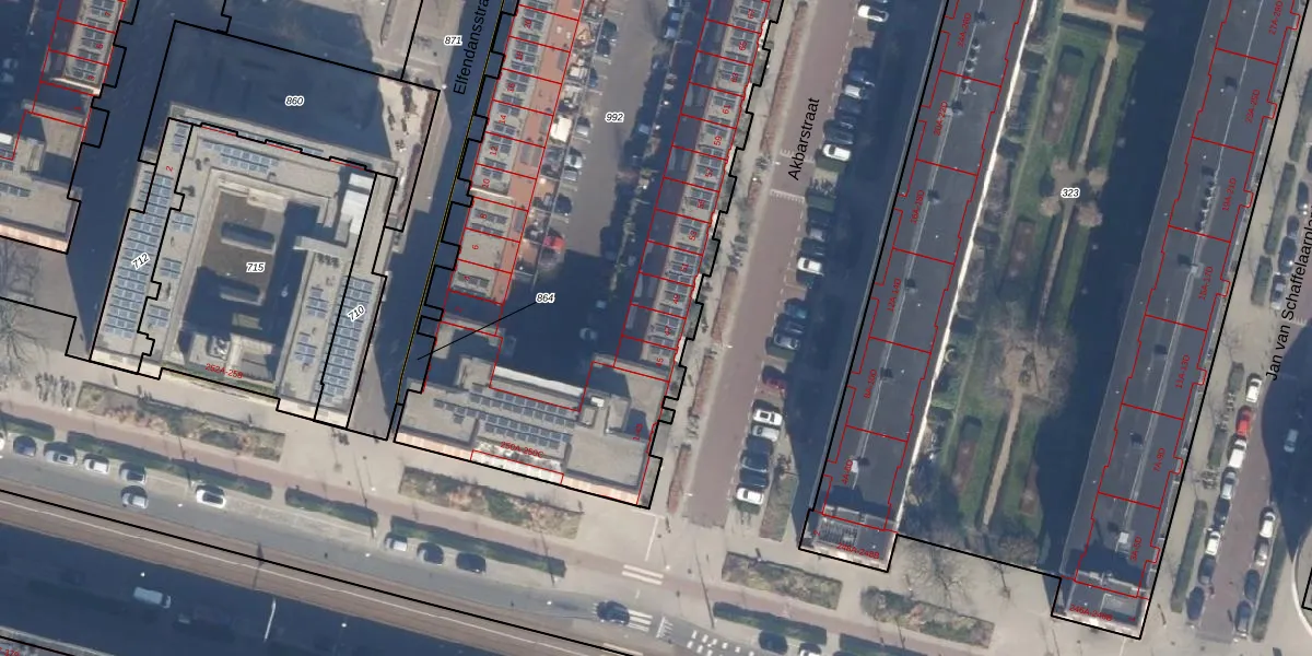 Het perceel waarop Akbarstraat 47 staat heeft een oppervlakte van 4885 m². Dit is een zeer groot perceel. De perceeloppervlakte wordt geregistreerd door het Kadaster. Gedetailleerde informatie over de maten van dit perceel kunt u vinden in het rapport Kadastrale kaart met maatvoering van Akbarstraat 47.