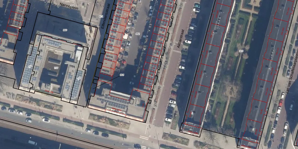 Het perceel waarop Akbarstraat 49 staat heeft een oppervlakte van 4885 m². Dit is een zeer groot perceel. De perceeloppervlakte wordt geregistreerd door het Kadaster. Gedetailleerde informatie over de maten van dit perceel kunt u vinden in het rapport Kadastrale kaart met maatvoering van Akbarstraat 49.
