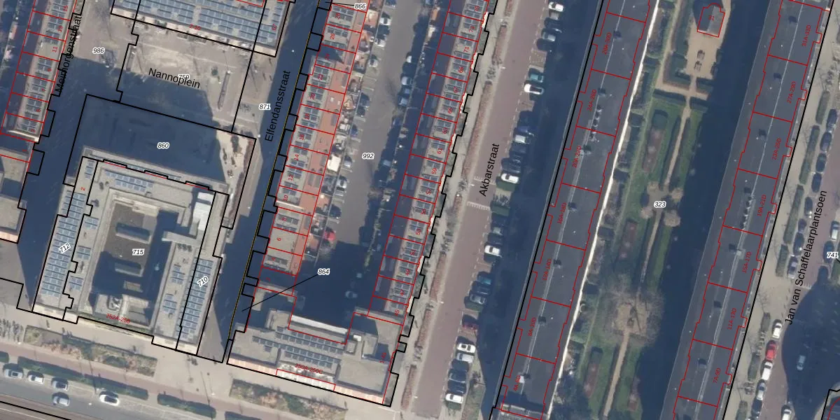 Het perceel waarop Akbarstraat 55 staat heeft een oppervlakte van 4885 m². Dit is een zeer groot perceel. De perceeloppervlakte wordt geregistreerd door het Kadaster. Gedetailleerde informatie over de maten van dit perceel kunt u vinden in het rapport Kadastrale kaart met maatvoering van Akbarstraat 55.