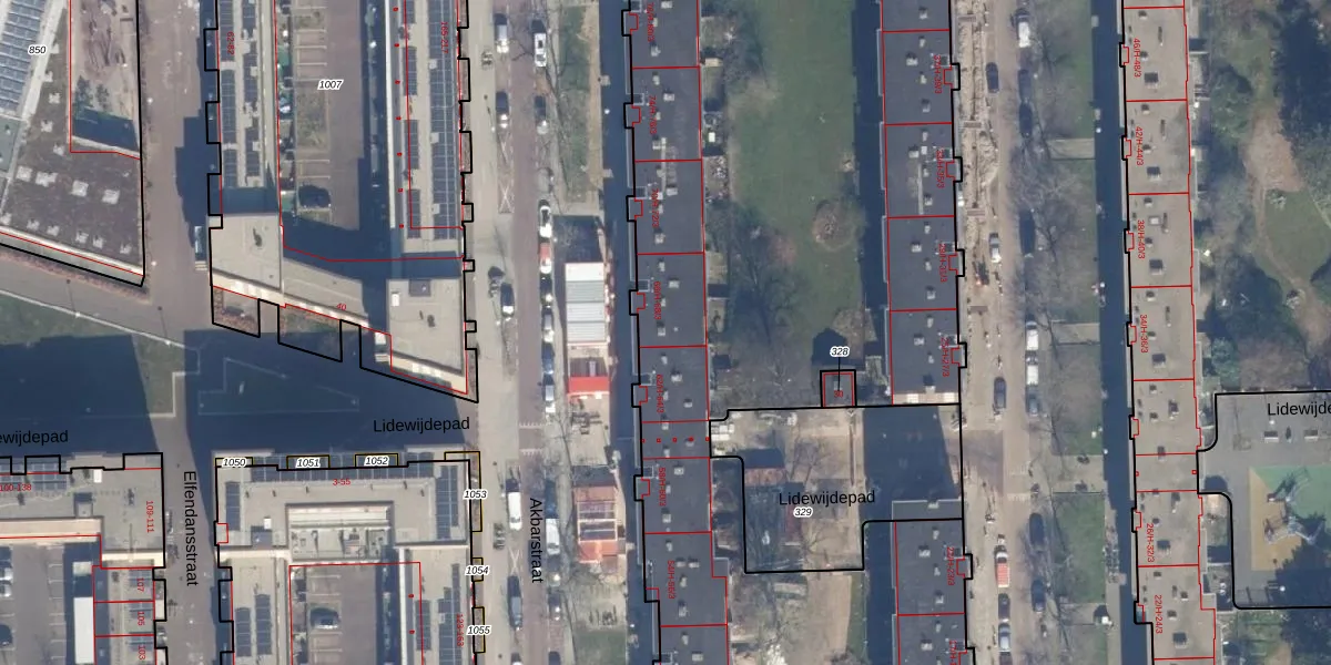 Het perceel waarop Akbarstraat 66-A staat heeft een oppervlakte van 7901 m². Dit is een zeer groot perceel. De perceeloppervlakte wordt geregistreerd door het Kadaster. Gedetailleerde informatie over de maten van dit perceel kunt u vinden in het rapport Kadastrale kaart met maatvoering van Akbarstraat 66-A.