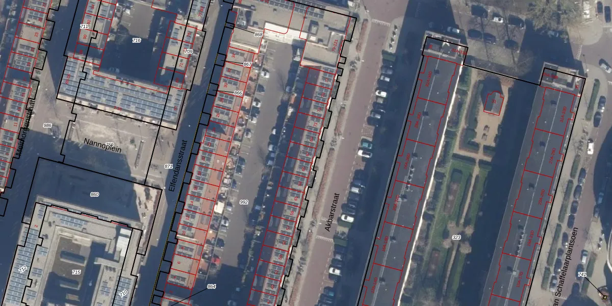 Het perceel waarop Akbarstraat 67 staat heeft een oppervlakte van 4885 m². Dit is een zeer groot perceel. De perceeloppervlakte wordt geregistreerd door het Kadaster. Gedetailleerde informatie over de maten van dit perceel kunt u vinden in het rapport Kadastrale kaart met maatvoering van Akbarstraat 67.
