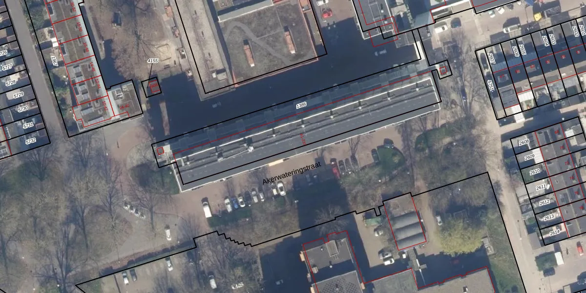 Het perceel waarop Akerwateringstraat 201 staat heeft een oppervlakte van 1585 m². Dit is een zeer groot perceel. De perceeloppervlakte wordt geregistreerd door het Kadaster. Gedetailleerde informatie over de maten van dit perceel kunt u vinden in het rapport Kadastrale kaart met maatvoering van Akerwateringstraat 201.
