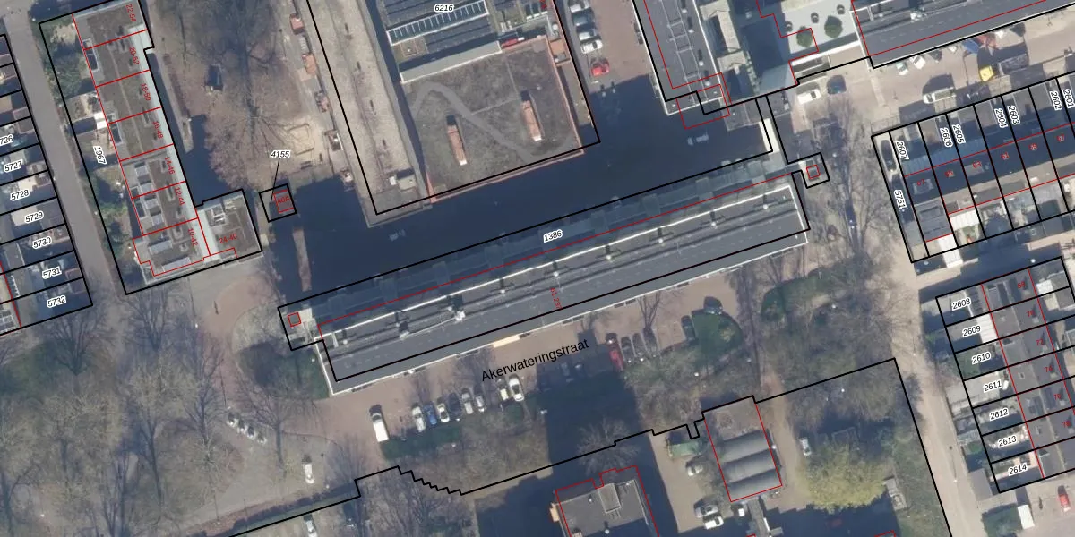 Het perceel waarop Akerwateringstraat 63 staat heeft een oppervlakte van 1585 m². Dit is een zeer groot perceel. De perceeloppervlakte wordt geregistreerd door het Kadaster. Gedetailleerde informatie over de maten van dit perceel kunt u vinden in het rapport Kadastrale kaart met maatvoering van Akerwateringstraat 63.