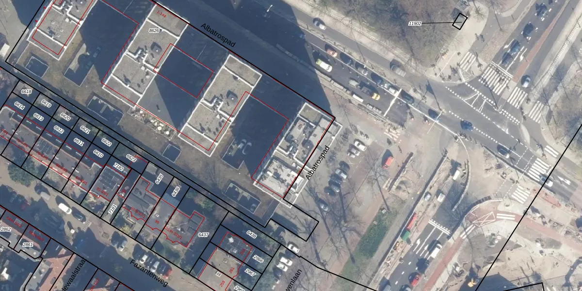 Het perceel waarop Albatrospad 18 staat heeft een oppervlakte van 4870 m². Dit is een zeer groot perceel. De perceeloppervlakte wordt geregistreerd door het Kadaster. Gedetailleerde informatie over de maten van dit perceel kunt u vinden in het rapport Kadastrale kaart met maatvoering van Albatrospad 18.
